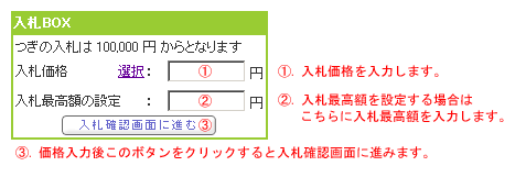 競上がり単位に基づく入札価格を入力し、「入札確認画面に進む」ボタンをクリックいたします。